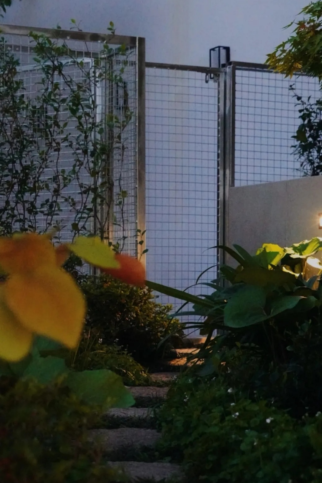为连接鸡舍与主要活动区,我们专门规划了一条富有巧思的动线。汀步两侧以茂密的观赏性植物进行软性隔离与引导,既有效遮蔽了功能区域,又将简单的通行过程转化为一段充满自然野趣的沉浸之旅。