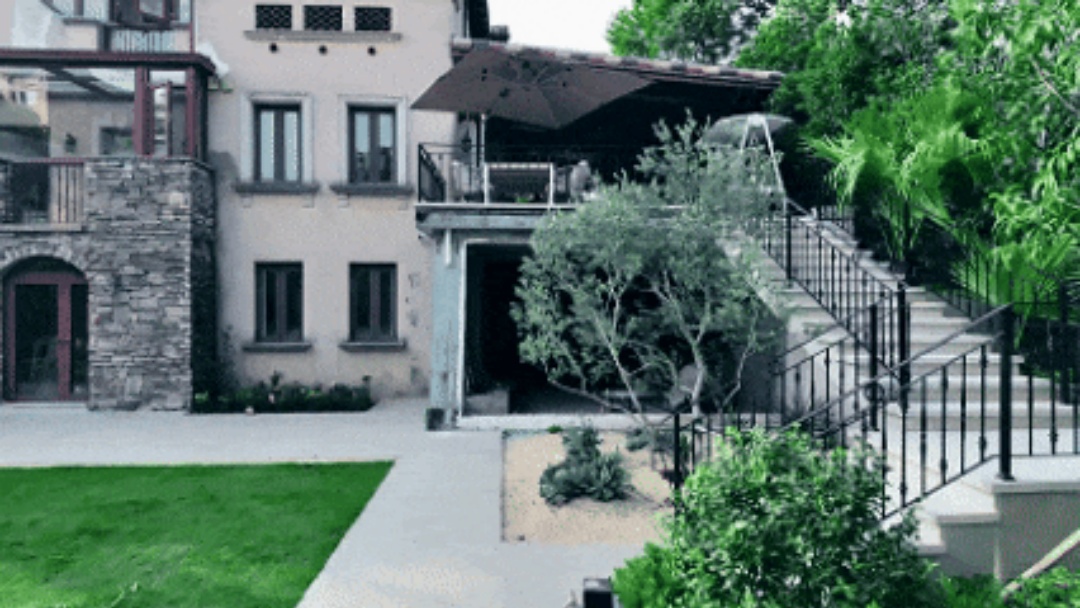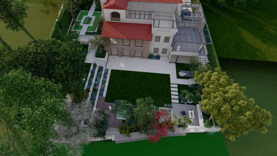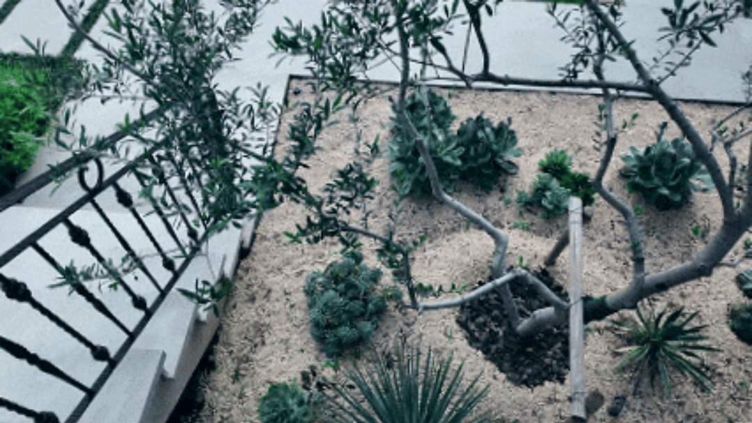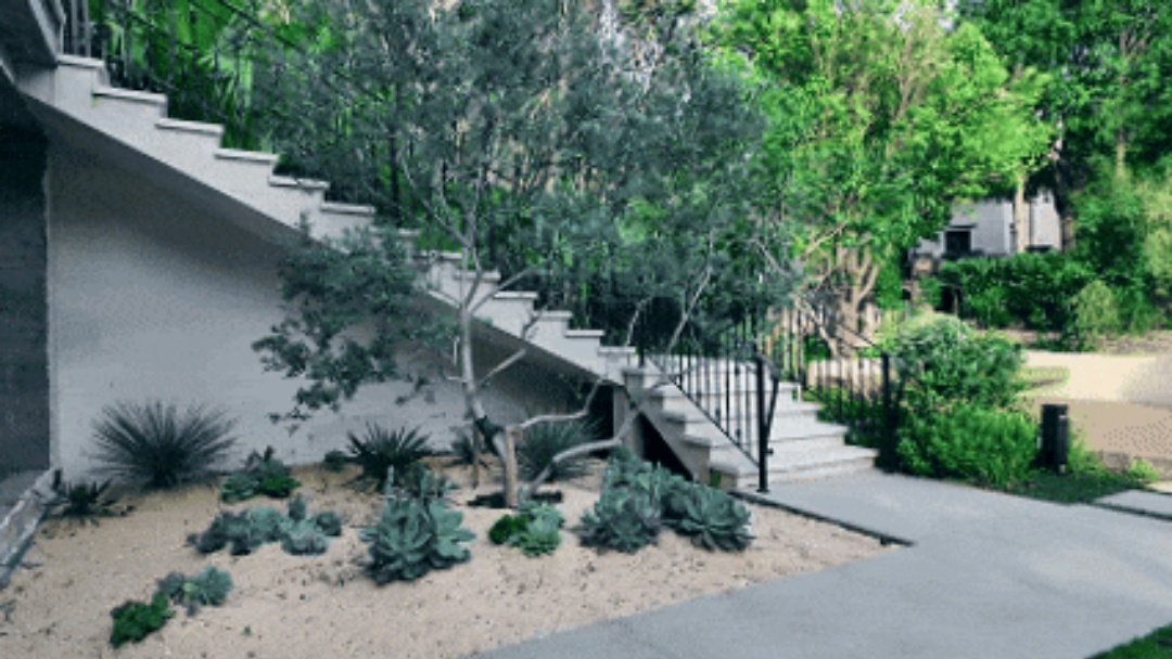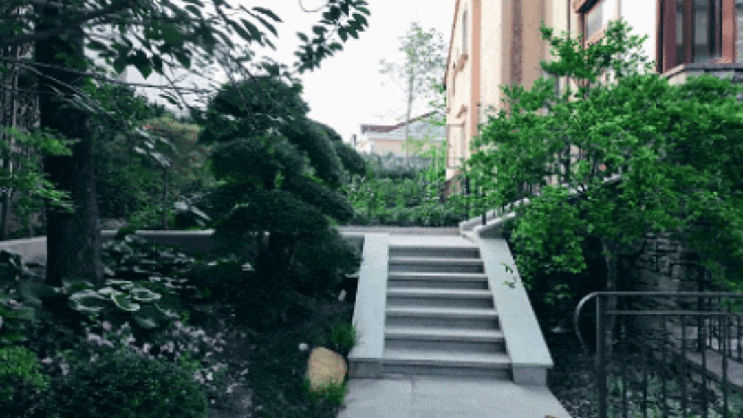 由于花园中的楼梯视觉占比较大,所以在这个区域做一些植物造景,我们希望通过景观设计的手法对其视觉表现进行柔化处理。