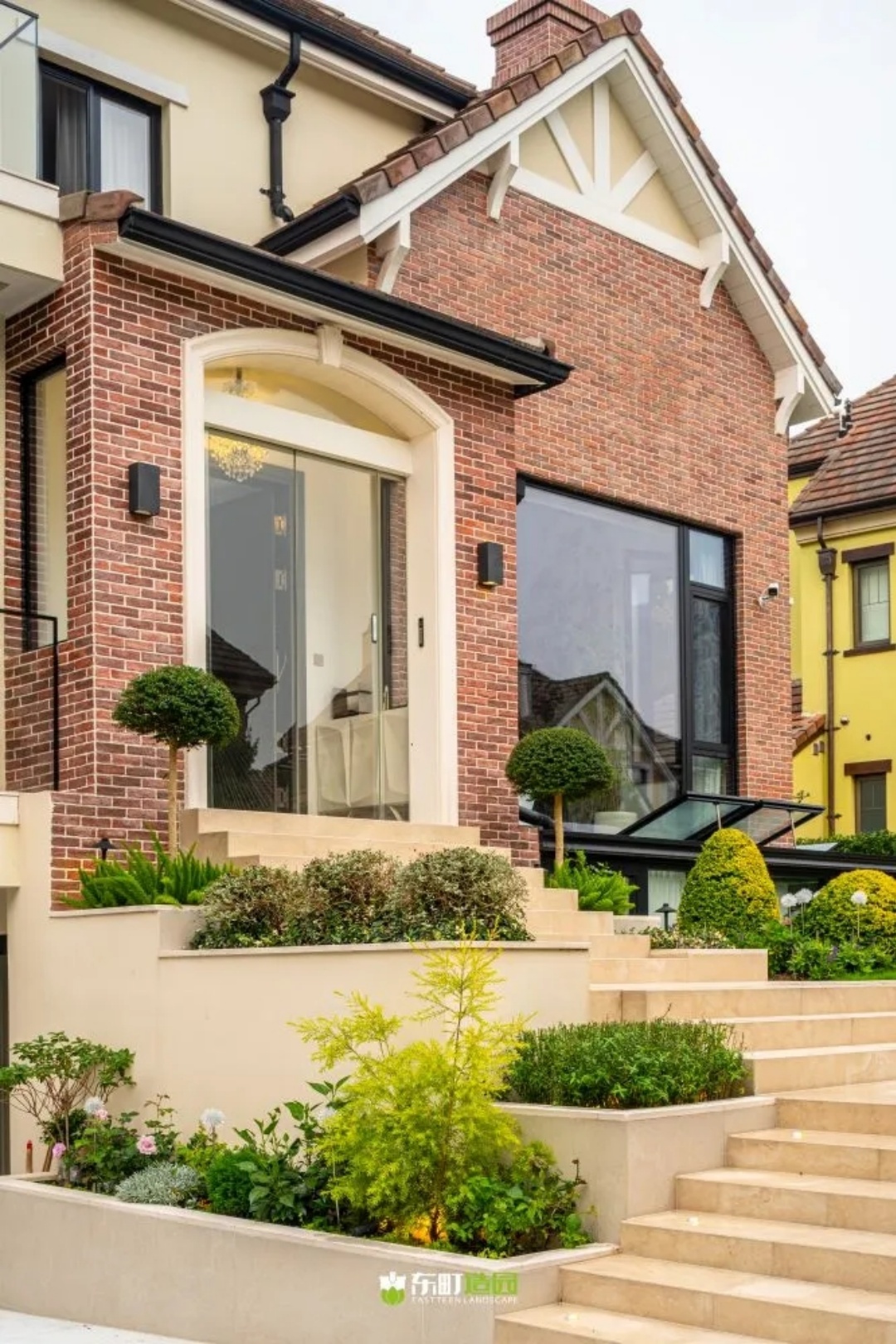 此外,为了减轻门厅和花园之间的高差感,我们设计了多层花坛和台阶,从而使整体空间更加优美和大气。