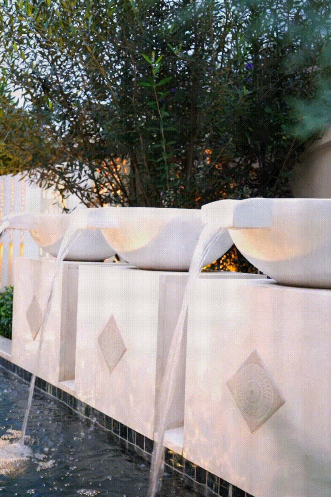 洗手池的高度是为了方便在下沉区域时洗手。搭配上植物,营造出浪漫的氛围,像是一个南花园,充满阳光的休闲区域。