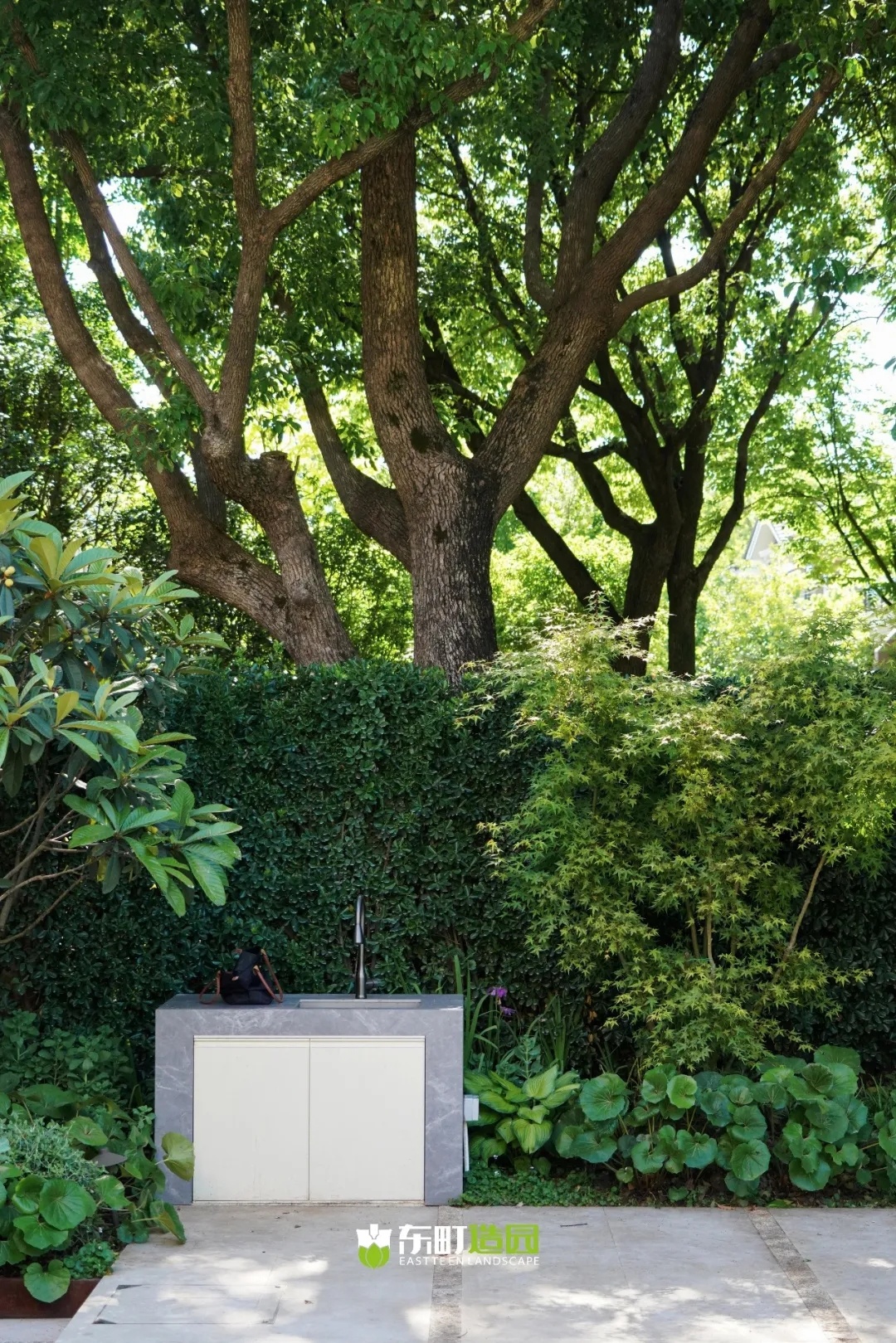 花园就餐空间首先一定要考虑和室内厨房或者餐厅的联动性,这样能更好的来满足户外就餐空间的菜品和餐具的进去,也能更好的让厨房空间的功能和花园餐厅空间的结合,同时花园就餐空间一定要配备一个洗手台,另外花园就餐空间周围的植物搭配最好具备一定的香味及富有季节变化的颜色,这样都可以来烘托就餐氛围。