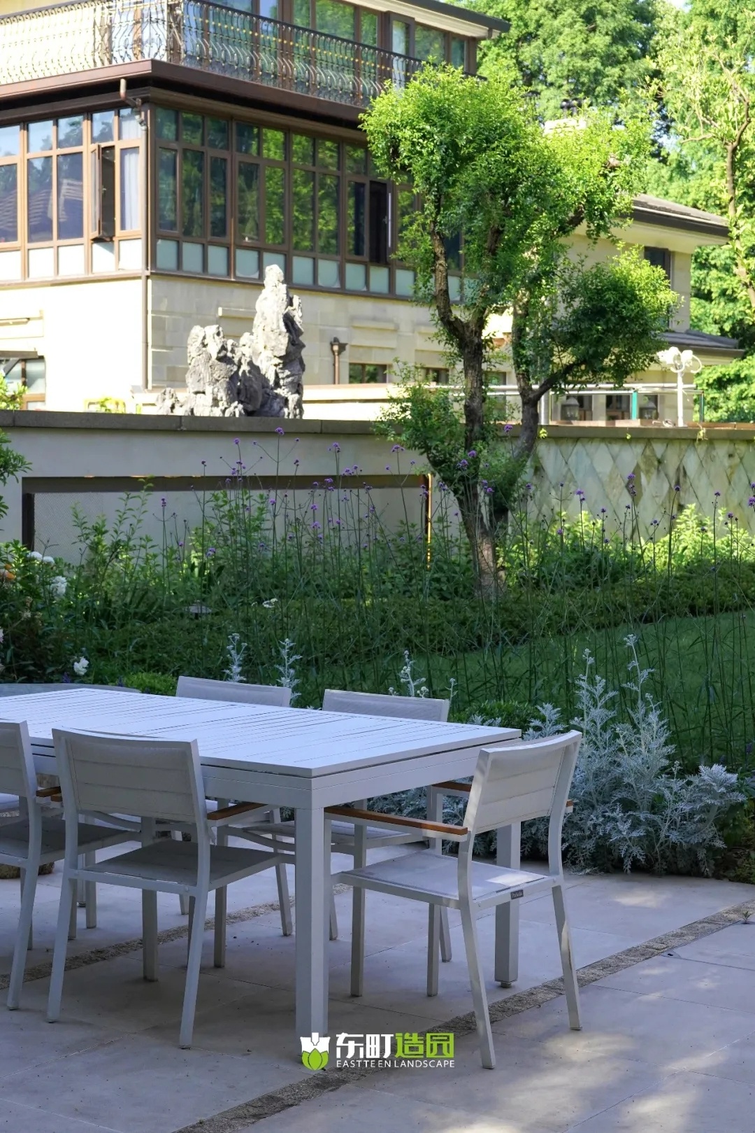 在设计这个花园时,我们面临了许多挑战,其中最主要的是如何在花园与周围建筑之间达到和谐的平衡。我们注重细节和美感,特别关注如何通过设计元素来打破传统的花园与建筑之间的界限,创造一个统一且和谐的空间。