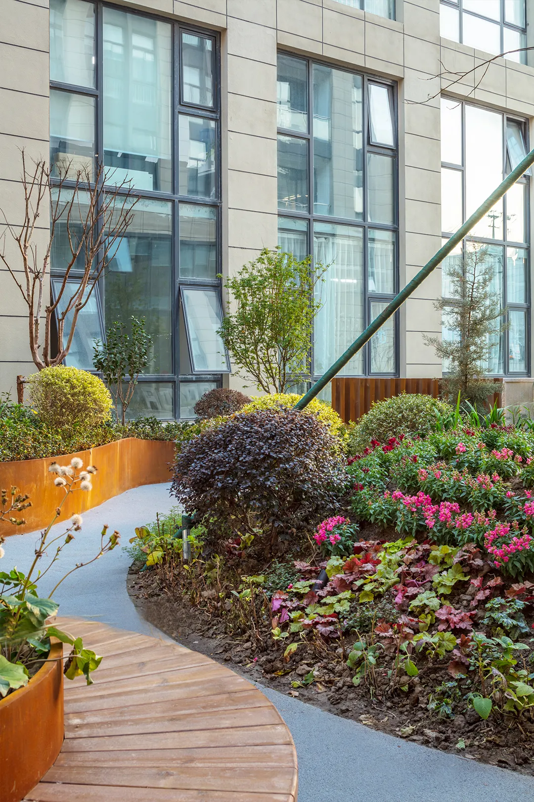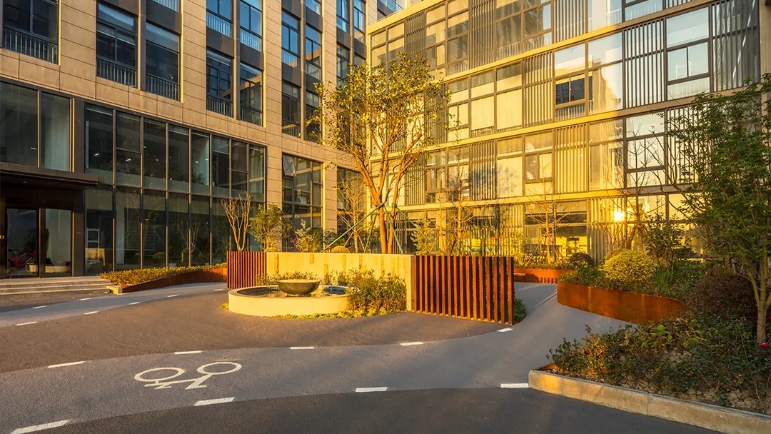 Since the client is a bicycle-driven enterprise, he hopes to integrate some elements of the enterprise into the landscape when making this landscape. The designer creates a mini-park themed by bicycles in this space.