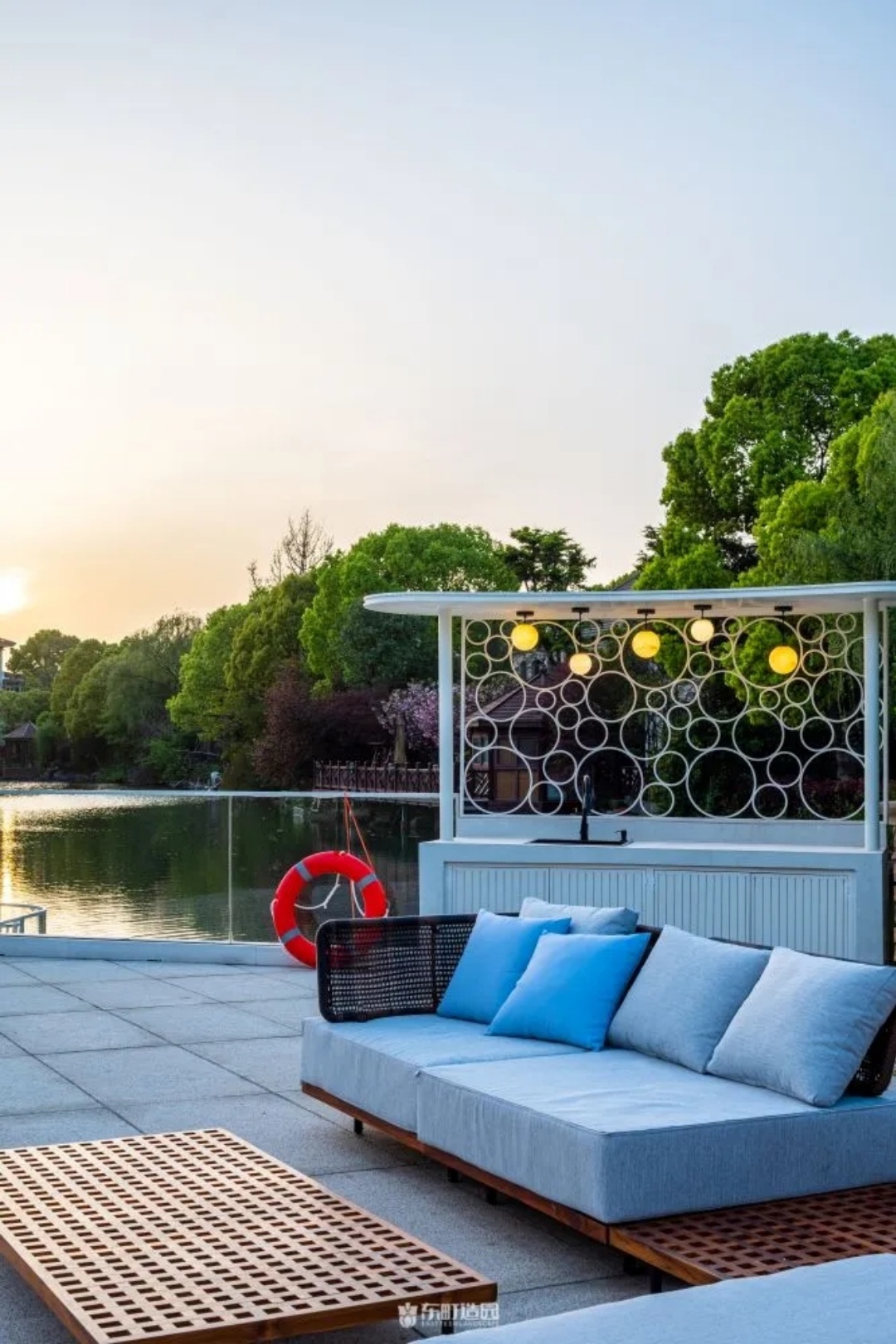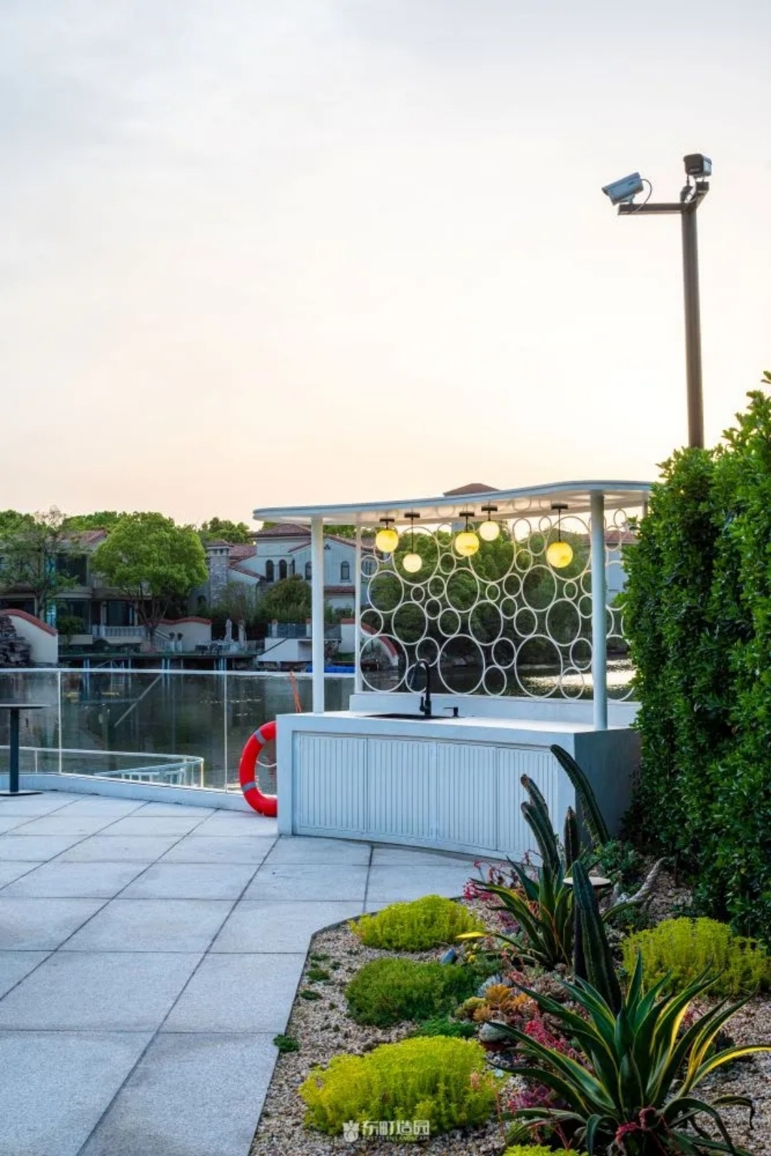 We have also placed outdoor dining areas in this area so that the owners can meet and relax in this environment. When operating in this area, consider landscape and convenience. We wanted to use the original lake for viewing and plant some plants around to create a Beverly Hills feel.