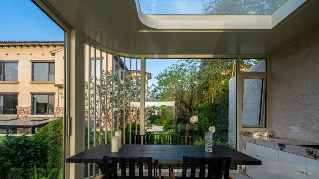 The function of a sunroom is not limited to drinking tea or chatting, it is more about creating a scene for the family. In the sunhouse, you can enjoy the beautiful views of the garden in 360 degrees. Although its interior space is large enough, it cannot replace the function of a sunhouse, which can better view the home and interact with the indoor space, while also feeling the form of the building from different perspectives.