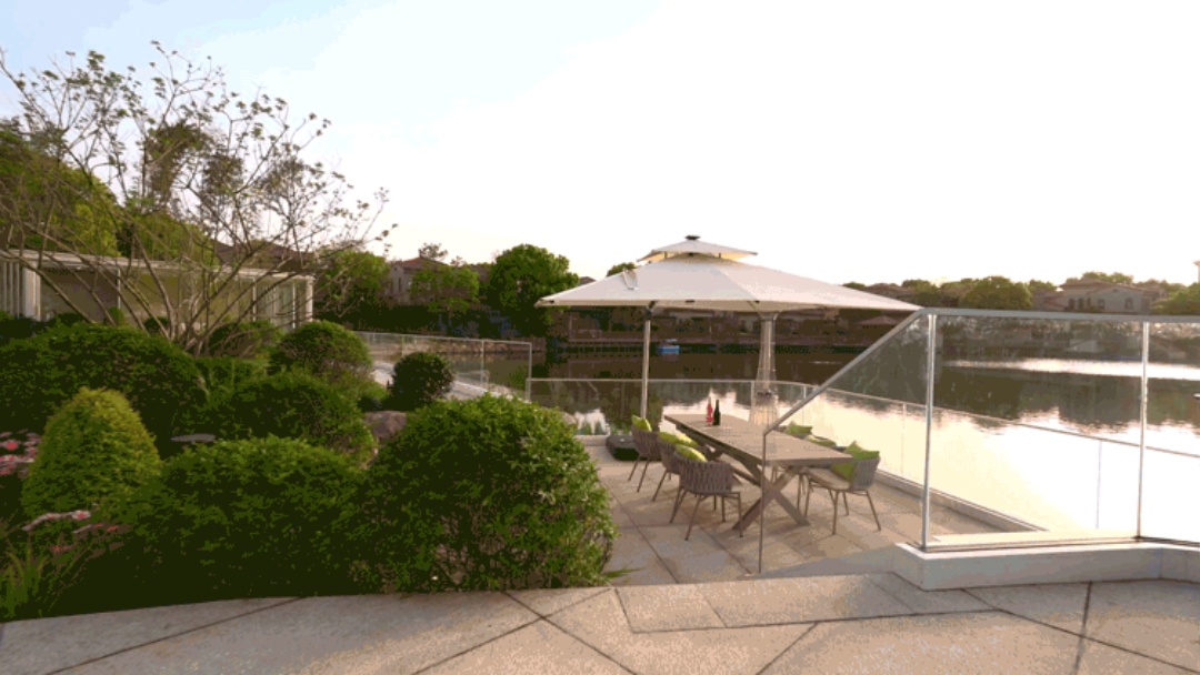 We started with the entrance and the design of the living space . The entrance problem is solved by folding doors and decorative materials . By adding plants , lighting and other elements to create atmosphere , using large trees to solve the side yard garden sight and privacy issues , pay attention to coordination and unity to make the space harmonious . Design a beautiful and practical large lawn , provide a place for outdoor activities and family gatherings , add sunken space and aquatic plants in the lake area to enhance the sense of interaction , consider convenience and aesthetics in the dining area , and weaken the unappealing factors in the corners to form a whole landscape . The sun room is multi-functional and provides a 360-degree view of the garden .