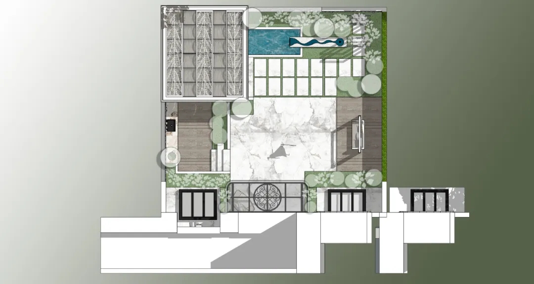 Through this design , our goal is to create a beautiful garden space that is both private and provides good shade . We wanted this space to be more than just a casual hangout, but also a place that was aesthetically pleasing and comfortable。The pavilion in the garden can not only provide a shelter for the residents from the sun and rain, but also allow them to feel the wonderful visual enjoyment in the process of interacting with nature.