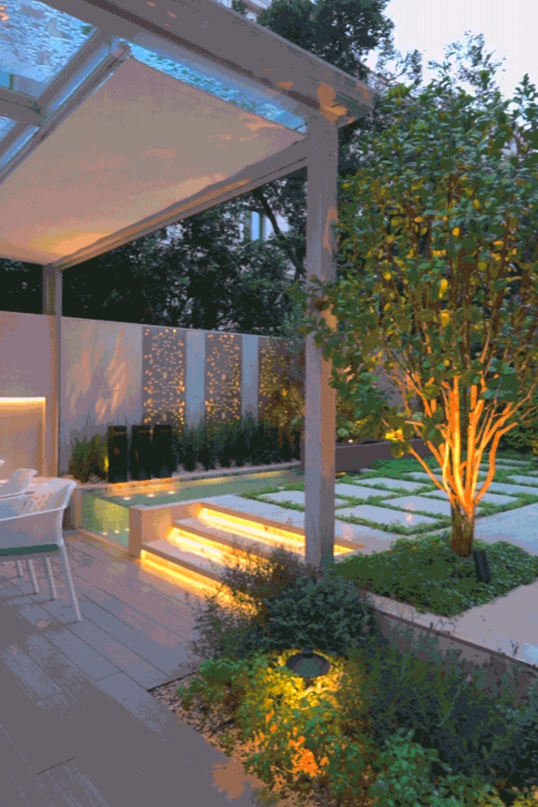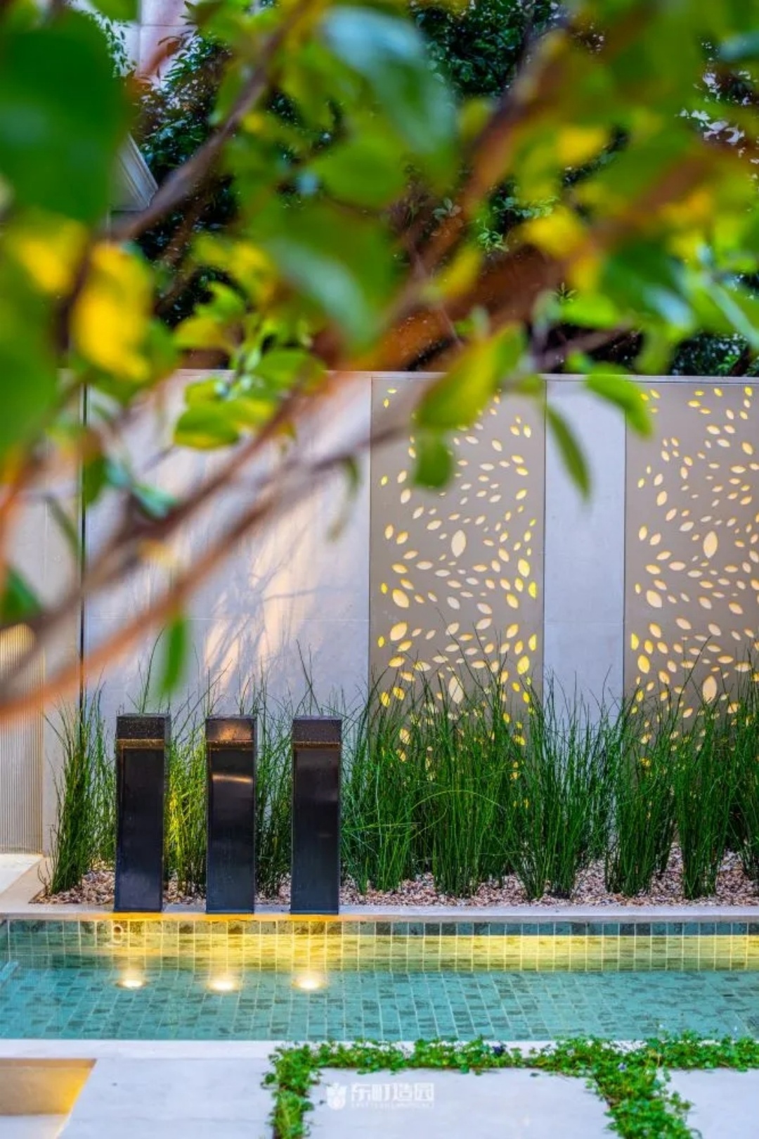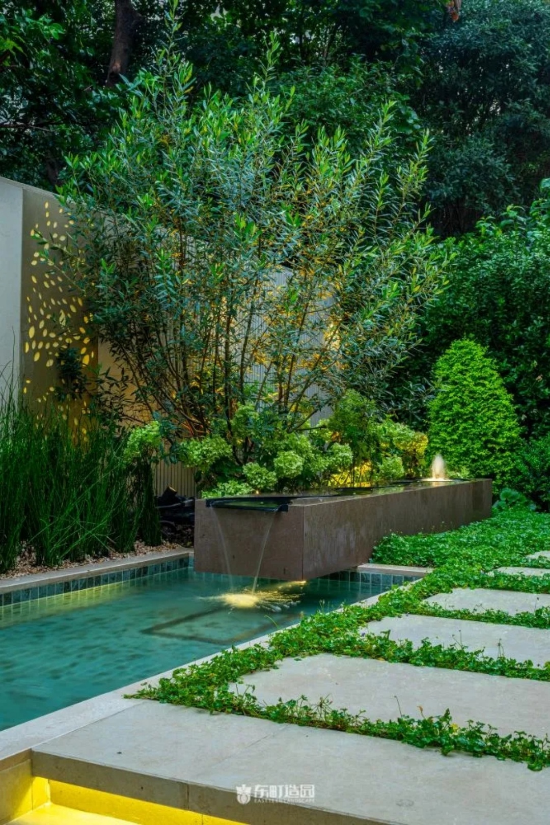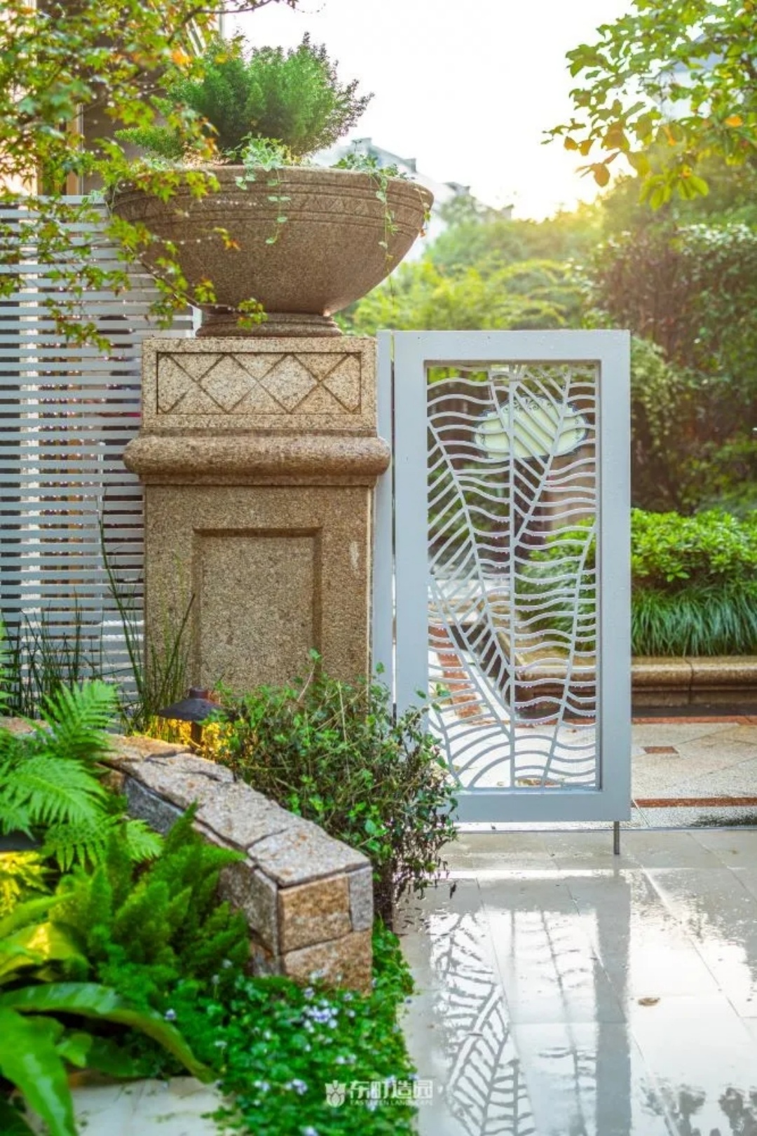 On one side of the garden , for example , we used flowerpots and hedges . Flower tiles add a modern touch to the whole space, while green hedges provide a green backdrop to the garden。We chose boxwood as the hedge plant, because its leaves are dense and delicate, and have good privacy。We wanted the private garden to look greener, so we made a lot of formal changes to the design.
