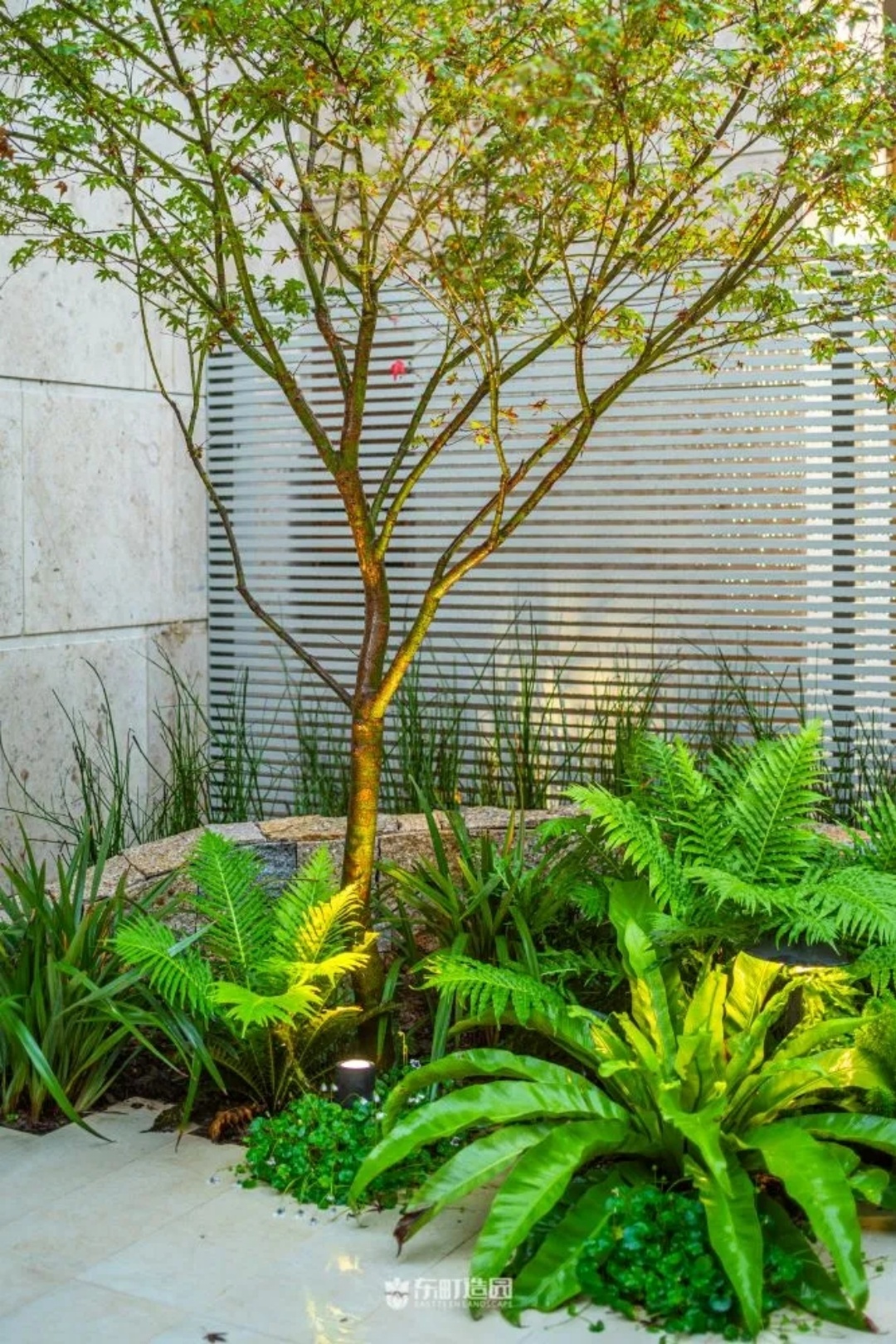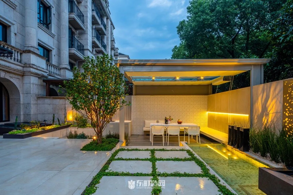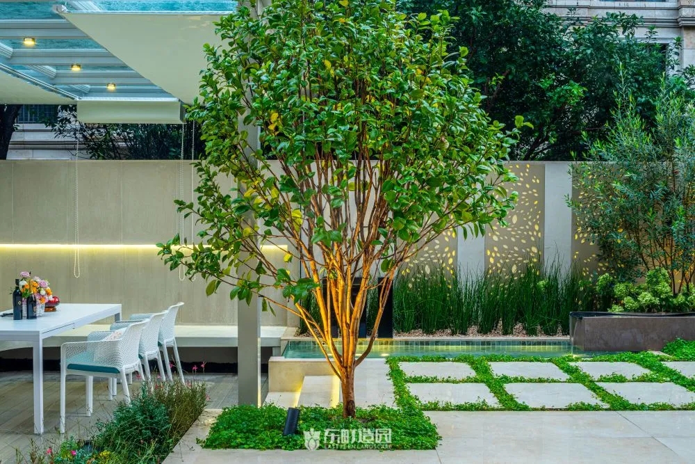We designed this courtyard with a number of factors in mind。While it initially looked like a square yard, we realised that a normal yard might not be quite right for the client's needs.We wanted the yard to be both maintenance-friendly and aesthetically pleasing, so we chose the right hardening material to reduce the lawn area and maintenance costs.