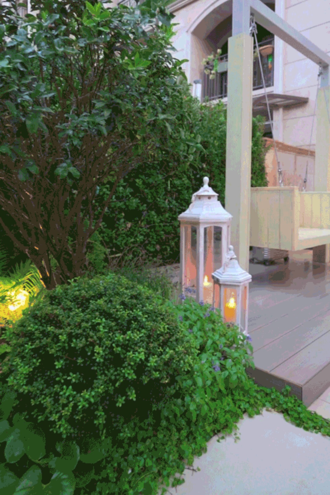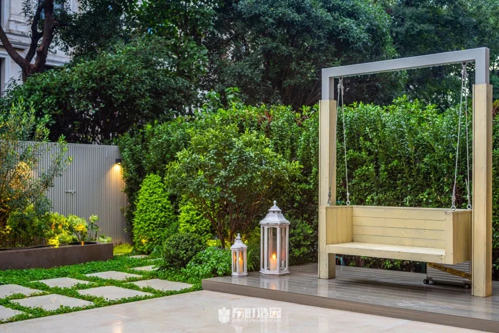 So we designed a multi-functional steel frame swing, which can not only be used to dry quilts, but also as a swing equipment。In this way, we can make full use of the limited courtyard space and achieve a beautiful effect.