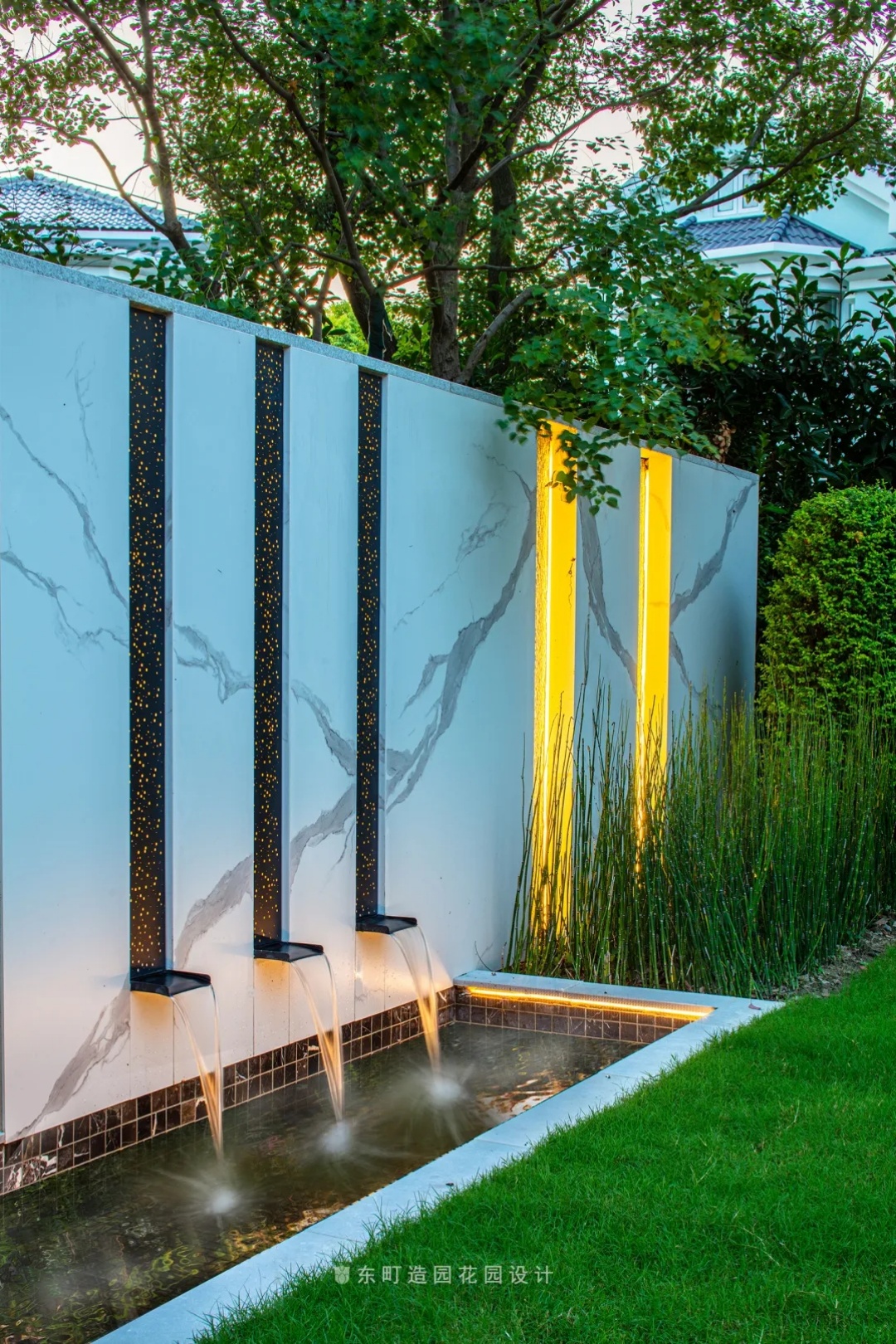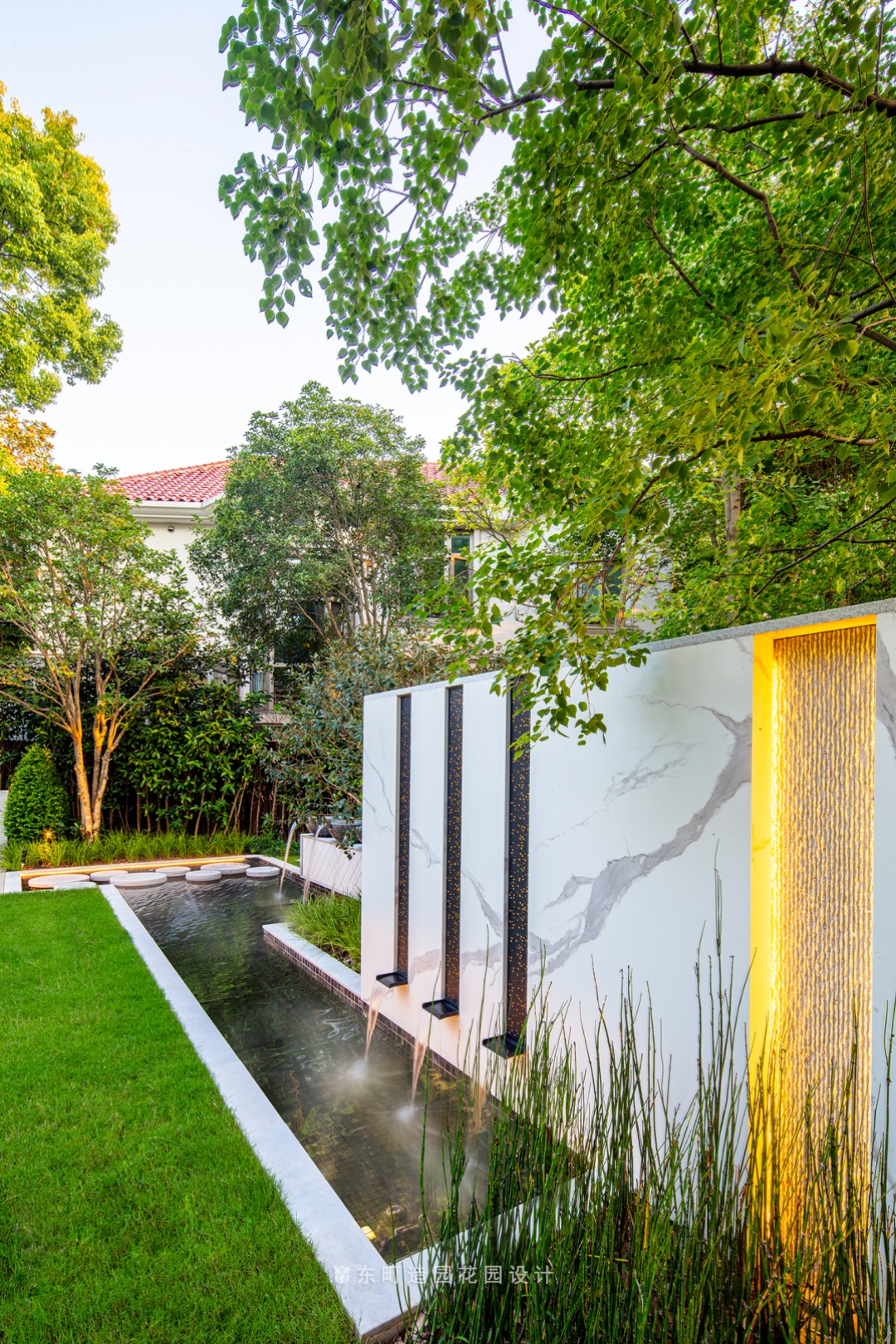 In this space, the rear of the water curtain wall, there is actually an electric sub-meter, and there will be some noise; By reducing the noise through the flow of the pool, the sound can be incorporated into our overall environment and will not be affected by the noise of the motor when moving inside the garden.