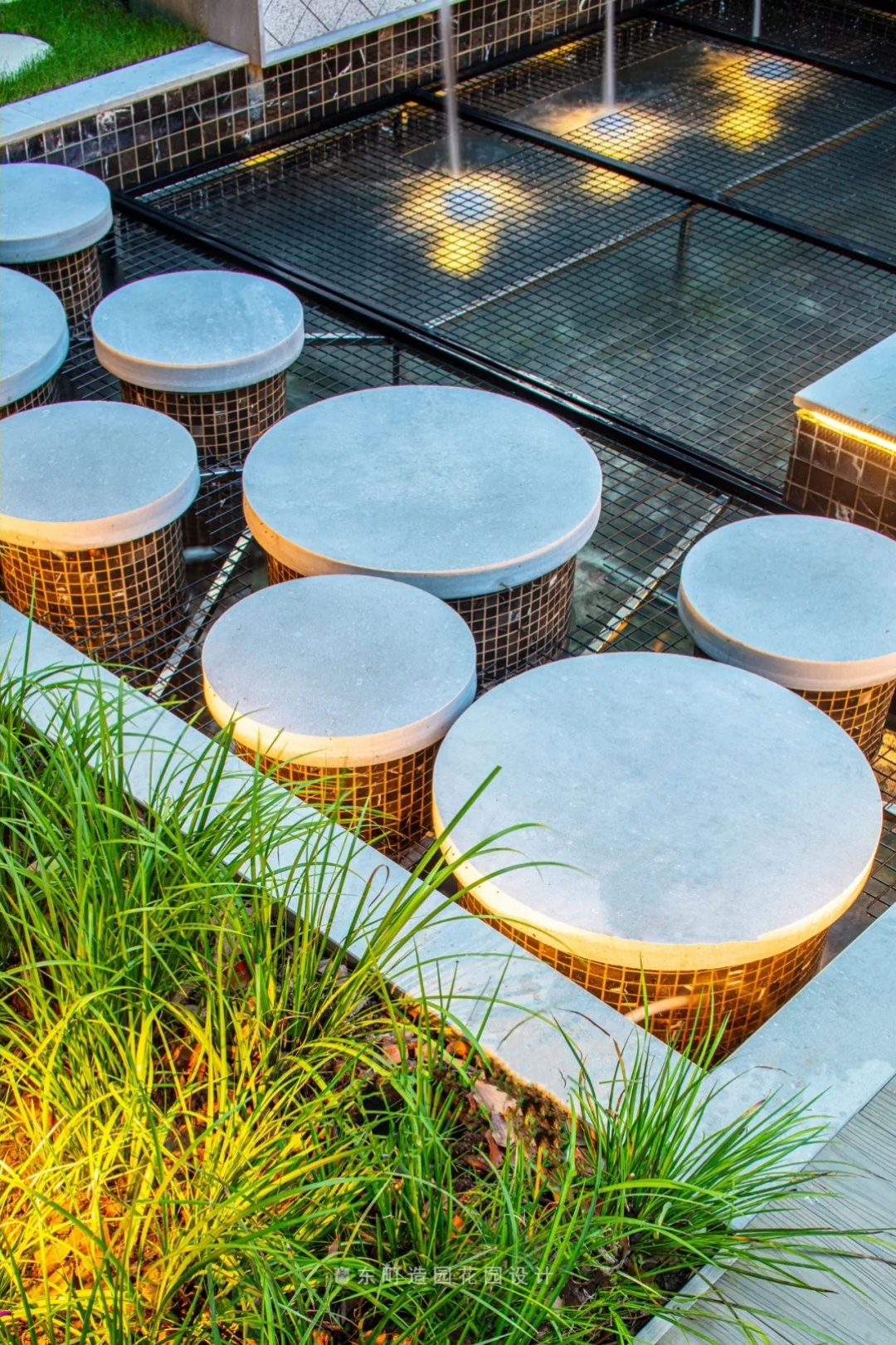 Small details were also designed below the water feature, because the owner's children are still young, so stainless steel mesh is laid under the water feature to ensure safety, and the mesh can be subsequently removed without affecting the overall effect of the water system.